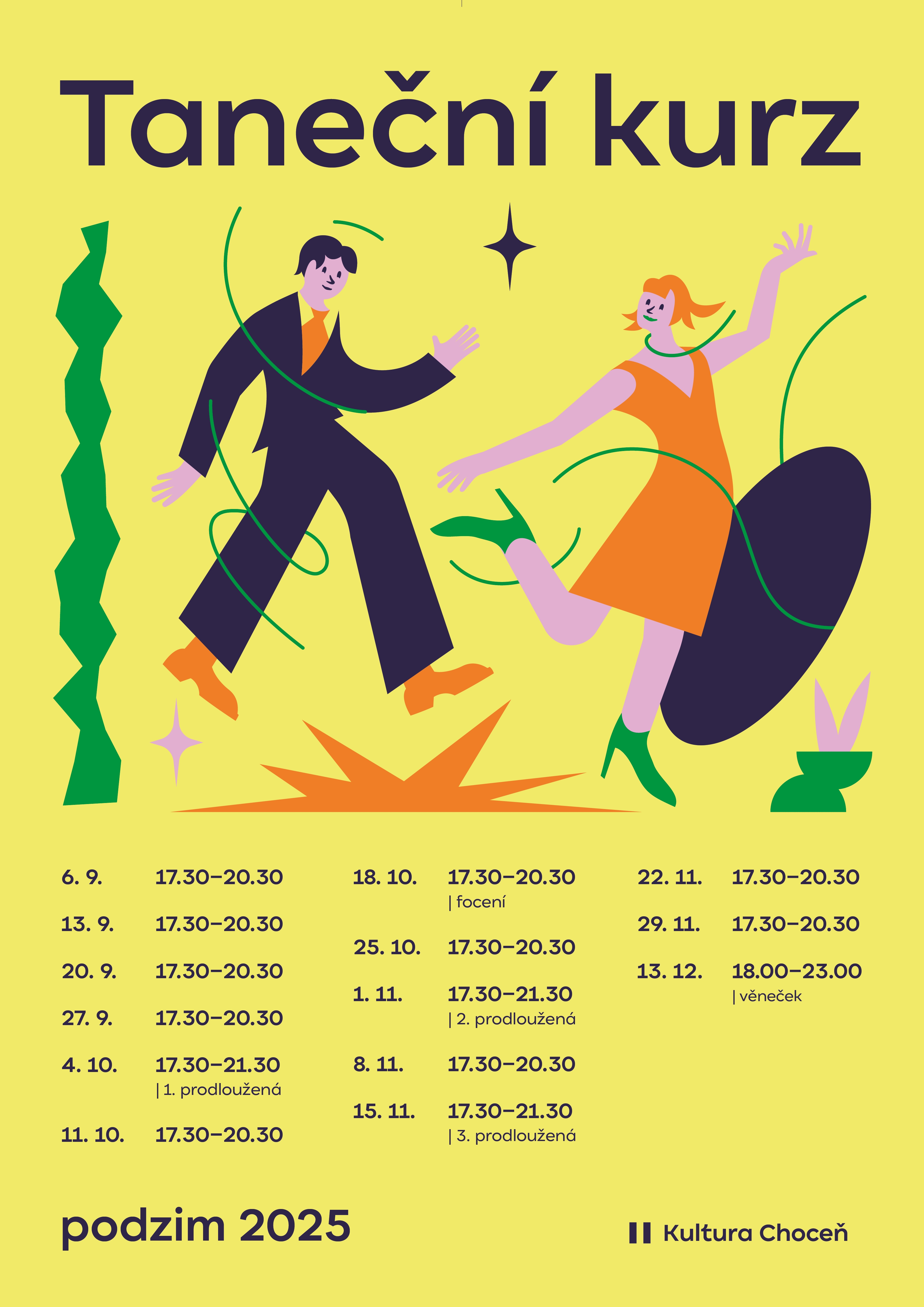 Závěrečná lekce tanečního kurzu pro mládež, na které zahraje taneční kapela LUCKY BAND.