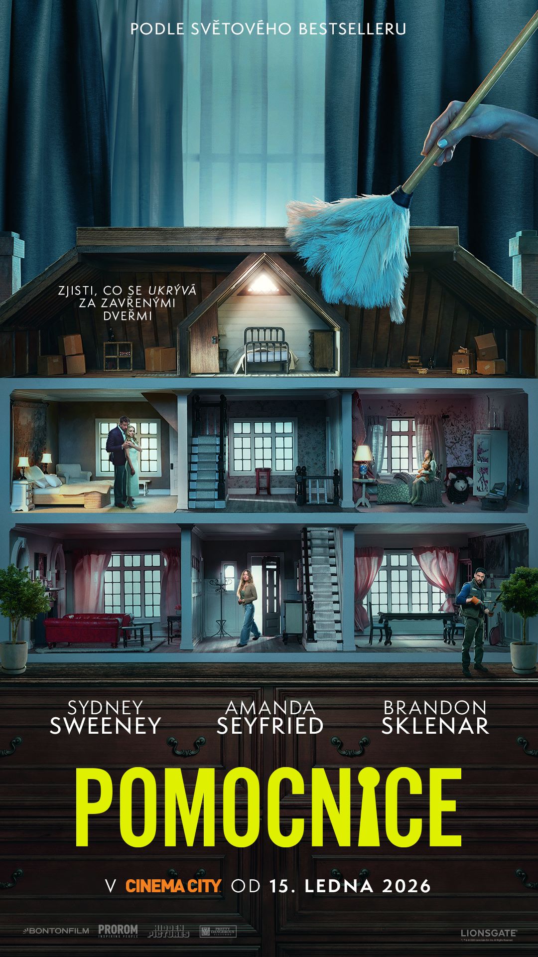 Když Millie (Sydney Sweeney) získá práci v domě Winchesterových, nemůže uvěřit, že se na ni konečně usmálo štěstí. Teď má šanci začít s čistým štítem! Co ale vypadá jako splněný sen, se rychle mění v něco mnohem nebezpečnějšího – sexy, svůdnou hru plnou tajemství, skandálů a manipulací. Ve zdánlivě perfektní domácnosti Niny (Amanda Seyfried) a Andrewa (Brandon Sklenar) je totiž víc špinavého prádla, než se na tuhle luxusní adresu sluší. Film Pomocnice natočený podle stejnojmenného bestselleru, který nadchl miliony čtenářů po celém světě a stal se nejlepším knižním thrillerem, vtáhne diváky do strhujícího příběhu plného šokujících zvratů a intrik, ve kterém funguje dokonale jen přetvářka.