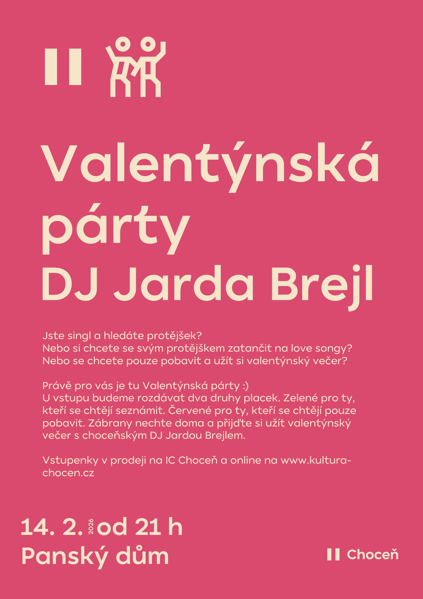 U vstupu budeme rozdávat dva druhy placek. Zelené pro ty, kteří se chtějí seznámit. Červené pro ty, kteří se chtějí pouze pobavit. Zábrany nechte doma a přijďte si užít valentýnský večer s choceňským DJ Jardou Brejlem.